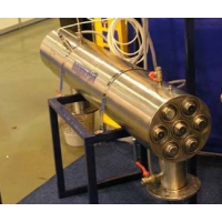 Одной из наиболее удачных разработок являются УФ установки серии "ВОДОГРАЙ" ТУ У 22651086.003-99. Установки серии "ВОДОГРАЙ" предназначены для безреагентного обеззараживания питьевых, сточных и шахтных вод ультрафиолетовым излучением. Основу установок составляет камера обеззараживания, которая представляет собой полый металлический корпус с подводящим и отводящим патрубками. Обеззараживание воды происходит в результате воздействия УФ излучения на протекающую через камеру обеззараживания воду. Внутри камеры обеззараживания расположены бактерицидные УФ лампы. Для защиты от непосредственного соприкосновения с водой УФ лампы помещены в защитные кварцевые чехлы. На корпусе камеры обеззараживания располагаются: УФ датчик, датчик наличия воды и устройство для выпуска воздуха. УФ датчик служит для контроля величины УФ дозы. В случае снижения величины УФ дозы ниже установленного предела (16 мДж/см2) включаются световая и звуковая сигнализации, которые предупреждают о необходимости проведения регламентных работ. Датчик наличия воды предназначен для блокировки включения установки при отсутствии воды в камере обеззараживания. Установки запитаны от электрической сети переменного тока частотой 50 Гц и напряжением 220 В или 380В.